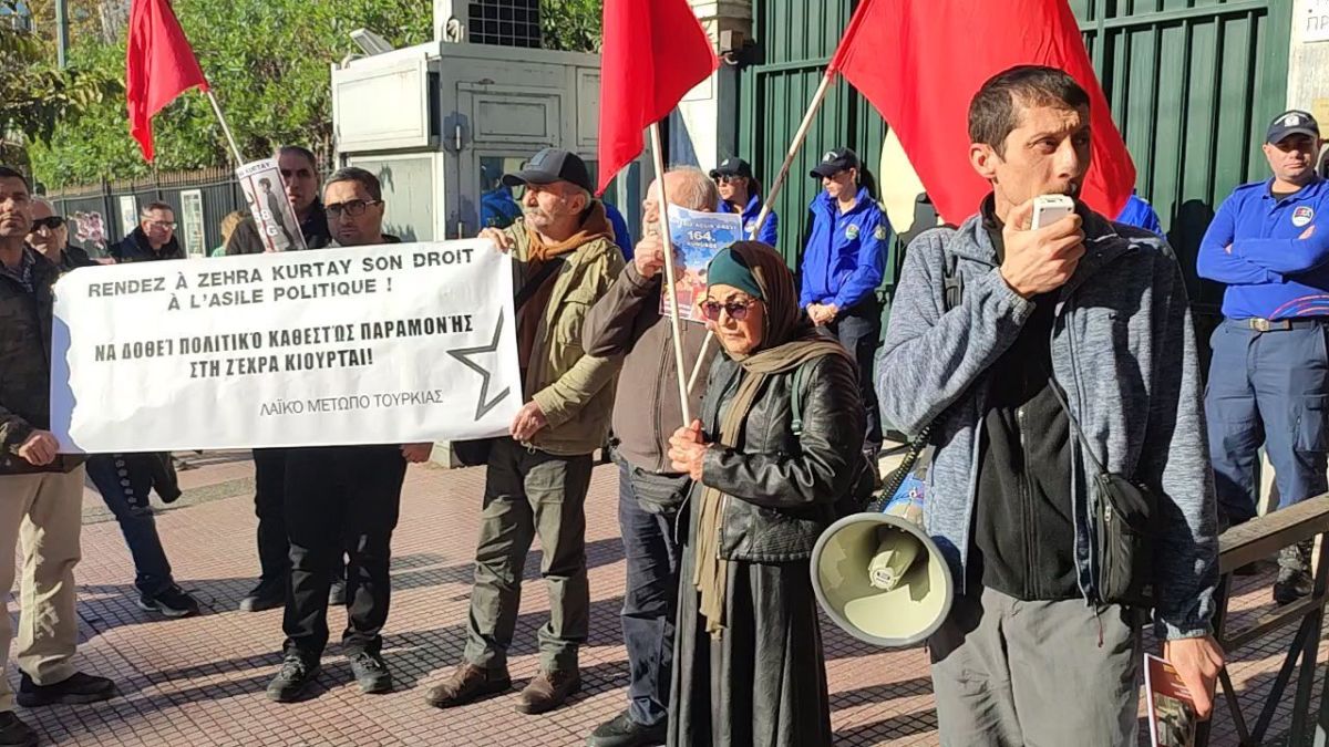 Atina’daki Fransa konsolosluğu önünde Zehra Kurtay’ın yalnız olmadığı ve derhal oturum haklarının geri verilmesi vurgulandı. Yaklaşık yarım saat süren eylem sloganlarla sonlandırıldı.