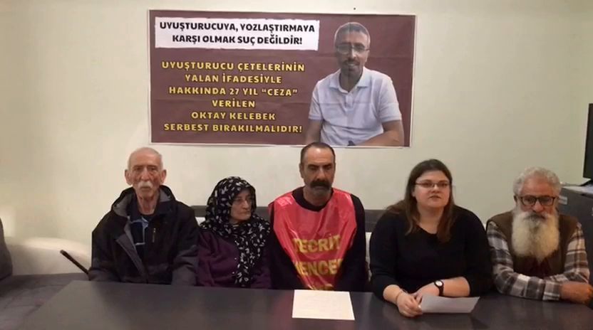 TAYAD’lı Aileler adına açıklama yapan Ferdi Sarıkaya uyuşturucunun devlet ve emperyalizm politikası olduğunu belirtti. Ferdi Sarıkaya yaptığı açıklamada “Uyuşturucu çeteleri, baronları ellerini kollarını sallayarak gezerken Oktay Kelebek’e 27 yıl ‘ceza’ verildi. Bu cezayı kabul etmiyoruz. TAYAD’lı Aileler olarak Oktay Kelebek’e verilen cezanın bozulmasını ve Oktay Kelebek’in derhal serbest bırakılmasını istiyoruz!” diyerek halkımıza her yerde Oktay Kelebek’in uyuşturucuya karşı mücadele ettiği için 27 yıl “ceza” ile tutuklandığını anlatma çağrısı yaptı.