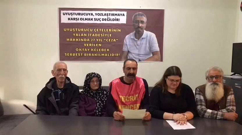 TAYAD’lı Aileler adına açıklama yapan Ferdi Sarıkaya uyuşturucunun devlet ve emperyalizm politikası olduğunu belirtti. Ferdi Sarıkaya yaptığı açıklamada “Uyuşturucu çeteleri, baronları ellerini kollarını sallayarak gezerken Oktay Kelebek’e 27 yıl ‘ceza’ verildi. Bu cezayı kabul etmiyoruz. TAYAD’lı Aileler olarak Oktay Kelebek’e verilen cezanın bozulmasını ve Oktay Kelebek’in derhal serbest bırakılmasını istiyoruz!” diyerek halkımıza her yerde Oktay Kelebek’in uyuşturucuya karşı mücadele ettiği için 27 yıl “ceza” ile tutuklandığını anlatma çağrısı yaptı.