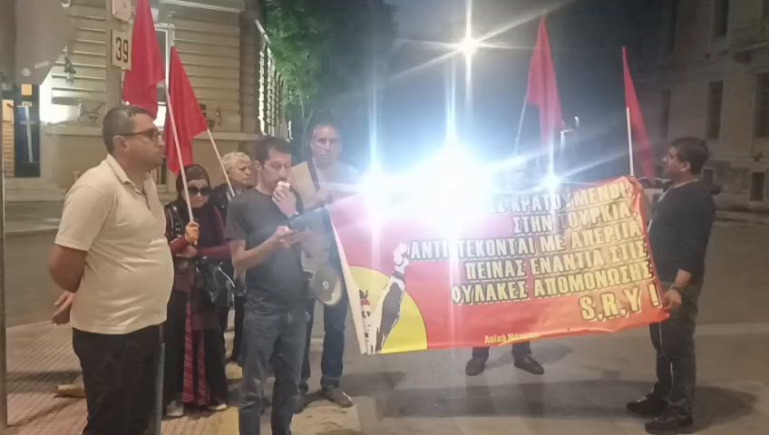 Yunanistan Halk Cephesi 27 Ekim 2025 Pazartesi günü S,R,Y kuyu tipi hapishanelere karşı Atina’da bulunan Türkiye Büyükelçiliği önünde eylem gerçekleştirdi.