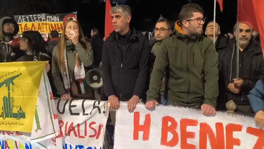 Venezuela’da ABD bir darbe gerçekleştirerek devlet başkanı Maduro’yu kaçırarak ABD’ye götürdü. Halkların katili ABD’nin bu saldırısı sonucu Yunan solunun çağrısıyla Özgürlük Parkında toplanan binlerce kişilik kalabalık ABD büyükelçiliğine doğru yürüyüşe geçti. Kitle “katil ABD Venezuela’dan defol” ABD büyükelçiliği’ne yürüdü. Elçiliğin önüne gelindiğinde ABD’nin dünya halklarının katili olduğu Venezuela’da açıkça bir darbe yaptığı anlatıldı.